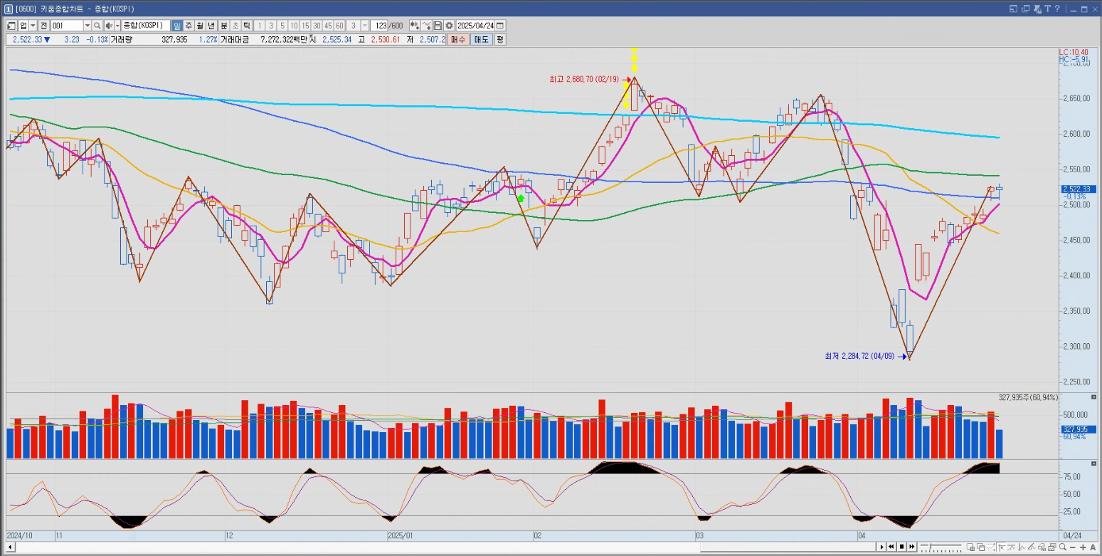 2025년 04월 24일 목요일 코스피 차트