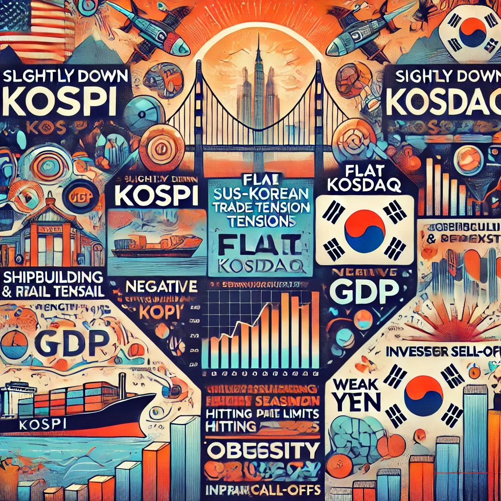 장중엔 美中 무역협상 기대감에 상승 출발했으나, 한국은행의 1분기 GDP 역성장 발표와 수급 부담으로 점차 하락 압력을 받았습니다.