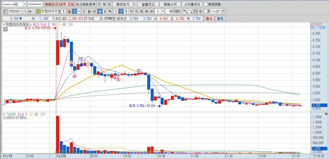 오늘도 어김없이.. 오전 시초가 불나방 단타 매매를 진행 해보았습니다.