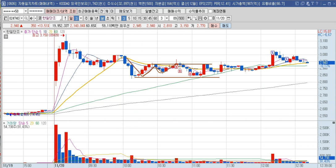 - 라방중에 양사부님께서 종목을 돌려 보는데 뭔가 제 눈에 들어와서 잡은 것으로 기억합니다.