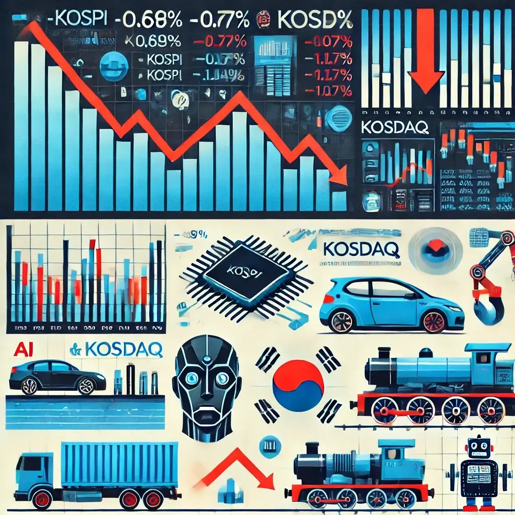 - 코스피는 외국인과 개인의 동반 순매도세가 지수를 압박했으며, 반도체와 자동차 섹터가 부진했습니다.