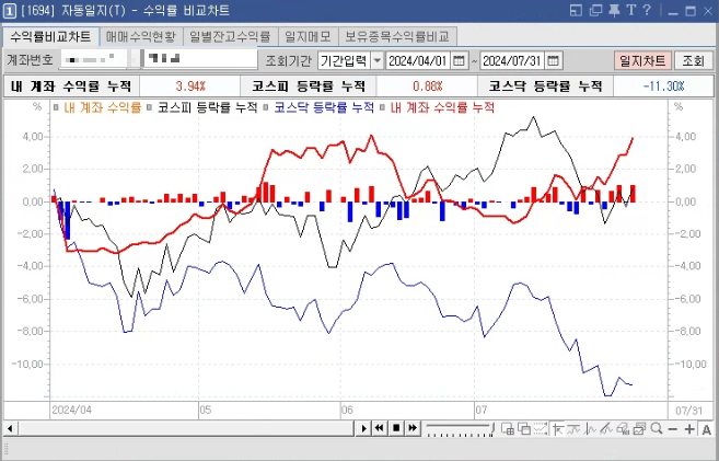 4월월 ~ 6월 초까지 좋았음. 하지만 6~7월 사이 두드려 맞으면서 자동매매의 불안정성을 다시 한번더 느꼈음.