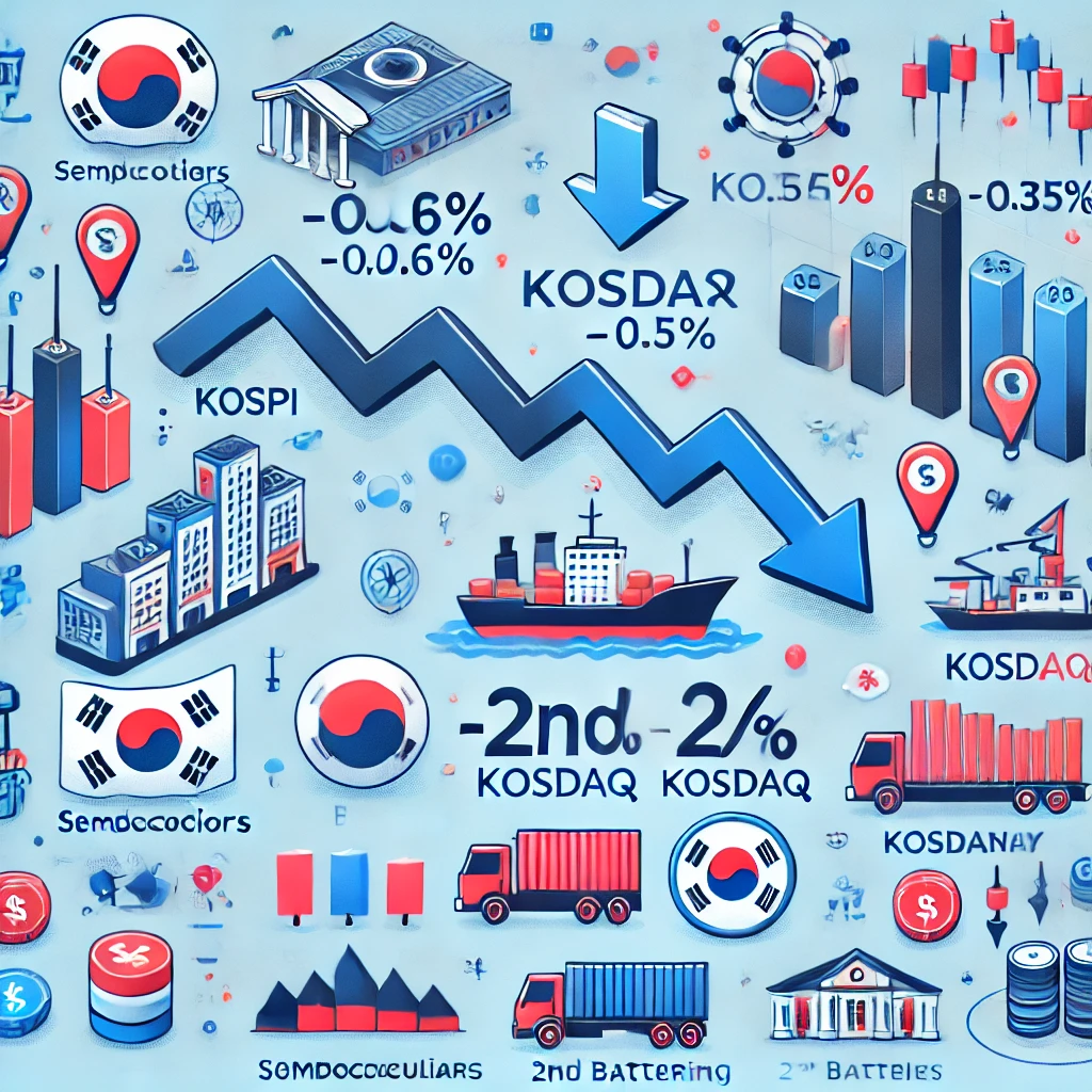 - 코스피는 외국인과 개인의 순매도세가 지수 하락을 이끌었으며, 반도체 및 조선업 관련주의 부진이 두드러졌습니다.