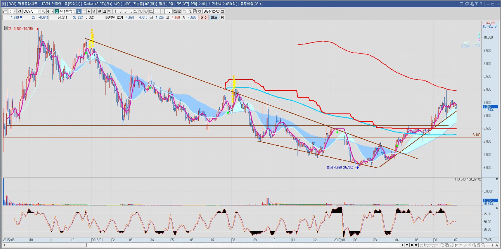 - 상장후 9년이며 최고/최저 대기 하면 중심 하단에 속하는 것으로 보임