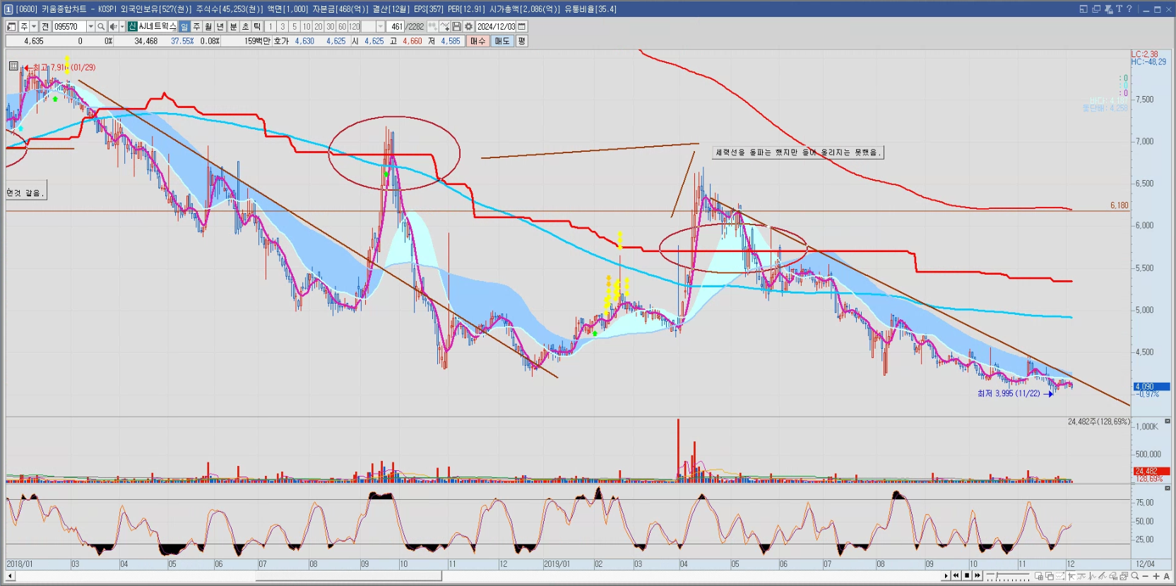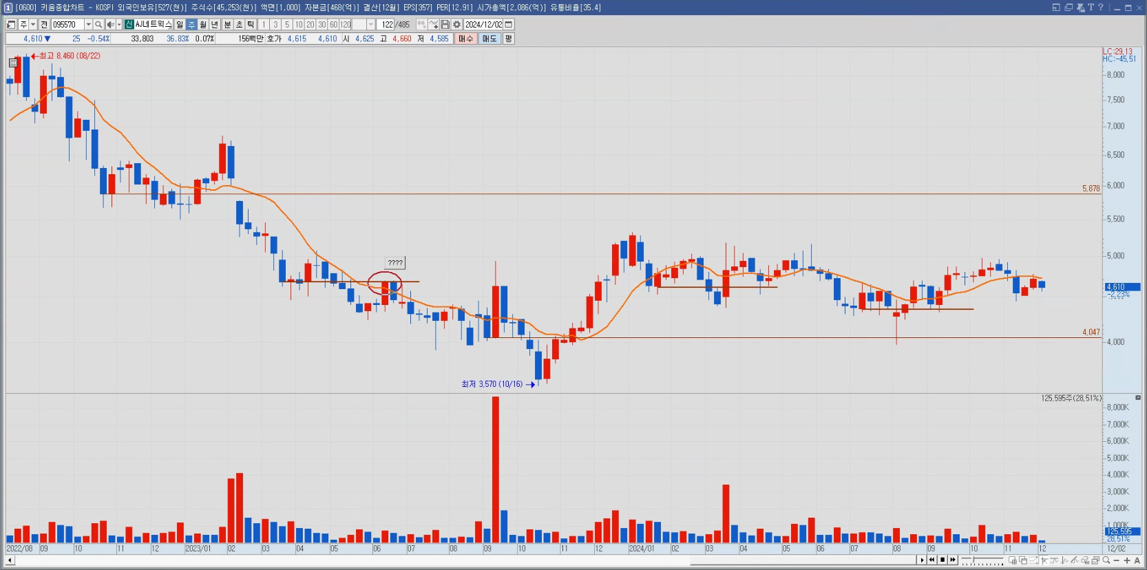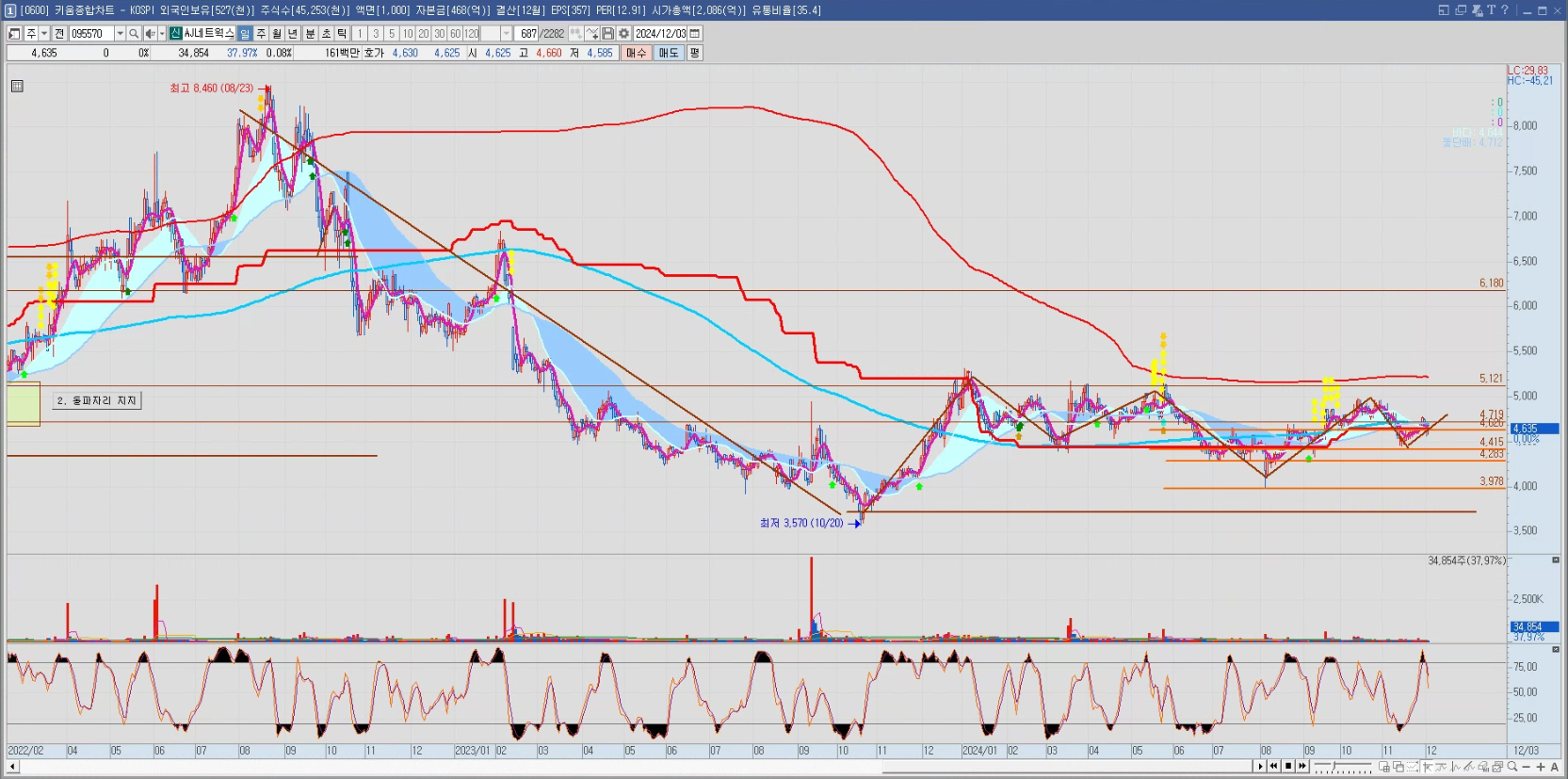 2023년 ~ 2024년 : 현재 차트 5,120원 가격대 돌파시 유의미한 가격대라 할수 있을것 같음.