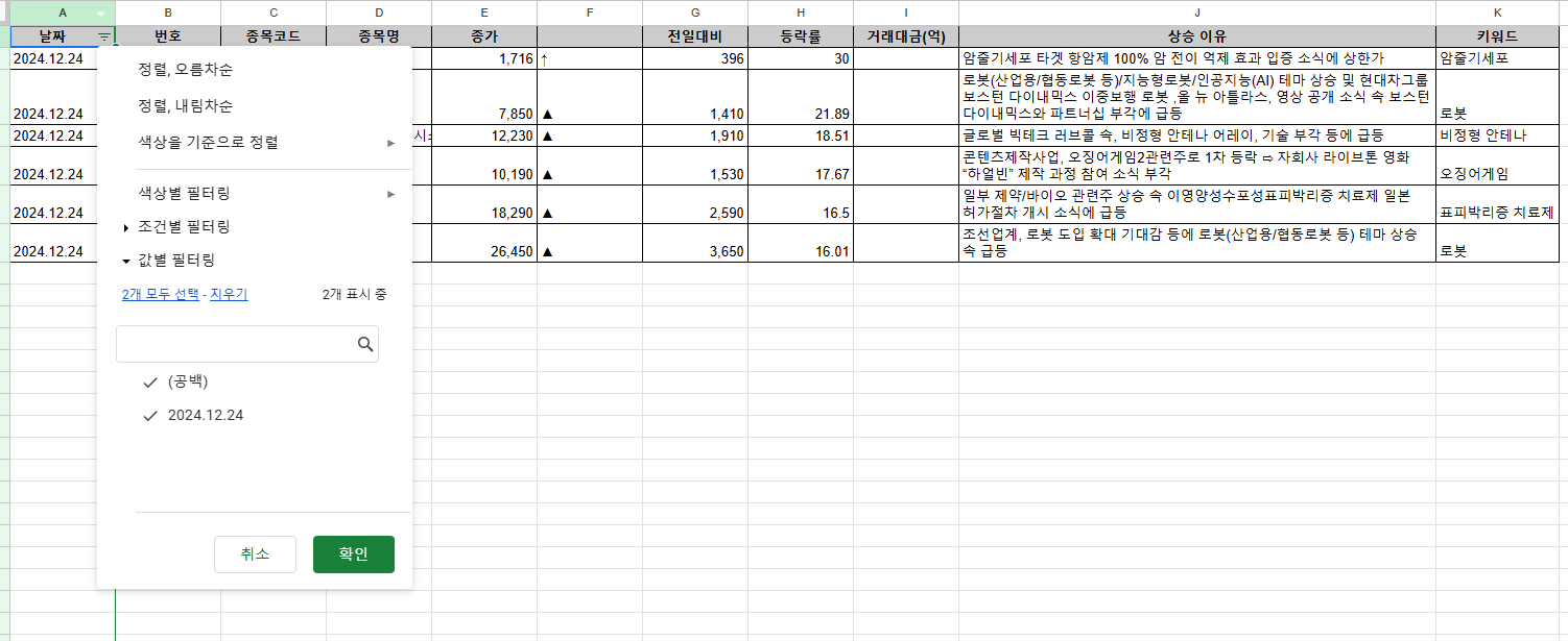 주린이의 주식공부 - 15% 급등주 정리방법