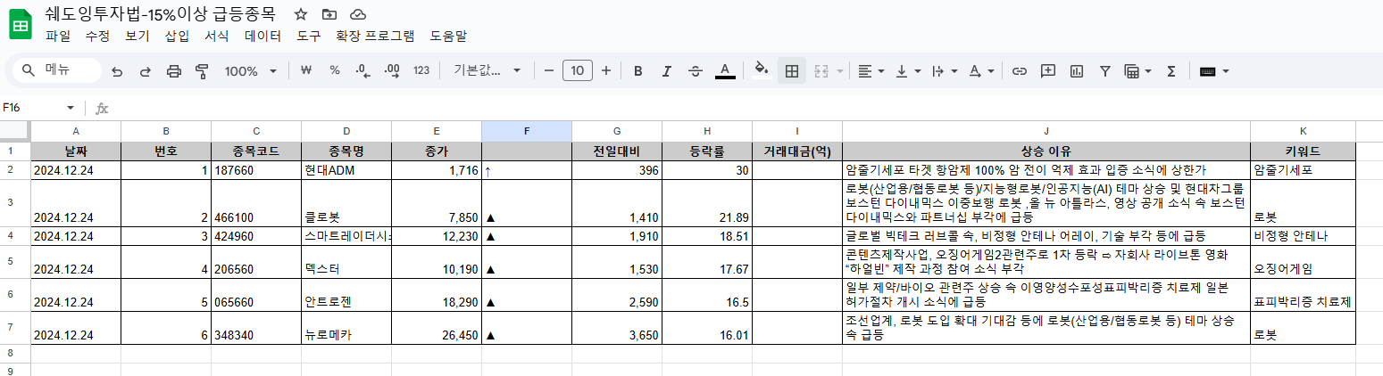 주린이의 주식공부 - 15% 급등주 정리방법